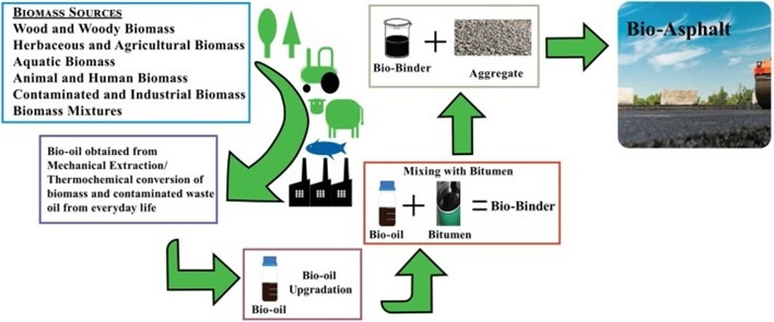 There’s a wealth of research focussed on improving bitumen’s properties as a binder in road surfacing, and by extension the sustainability of roads. Polymeric materials are the staple additives used to make hot bituminous mixtures more flexible at low temperatures and more rigid at hotter temperatures. SBS (Styrene-Butadiene-Syrene) is the most used additive, but given the cost and fossil fuel derived nature of the polymeric additives, a host of creditable alternatives have been investigated – carbon based substances such as bio-oils, biochar, activated carbon, natural wastes, gum, poly saccharides and natural rubber. The chemistry varies however depending on the availability of feedstock in a given jurisdiction where bio-bitumen is being produced, there may be more than one silver bullet. Inter alia, plastics have perhaps attracted the most attention and represent one of the most promising modifier of all the bitumen modifiers.