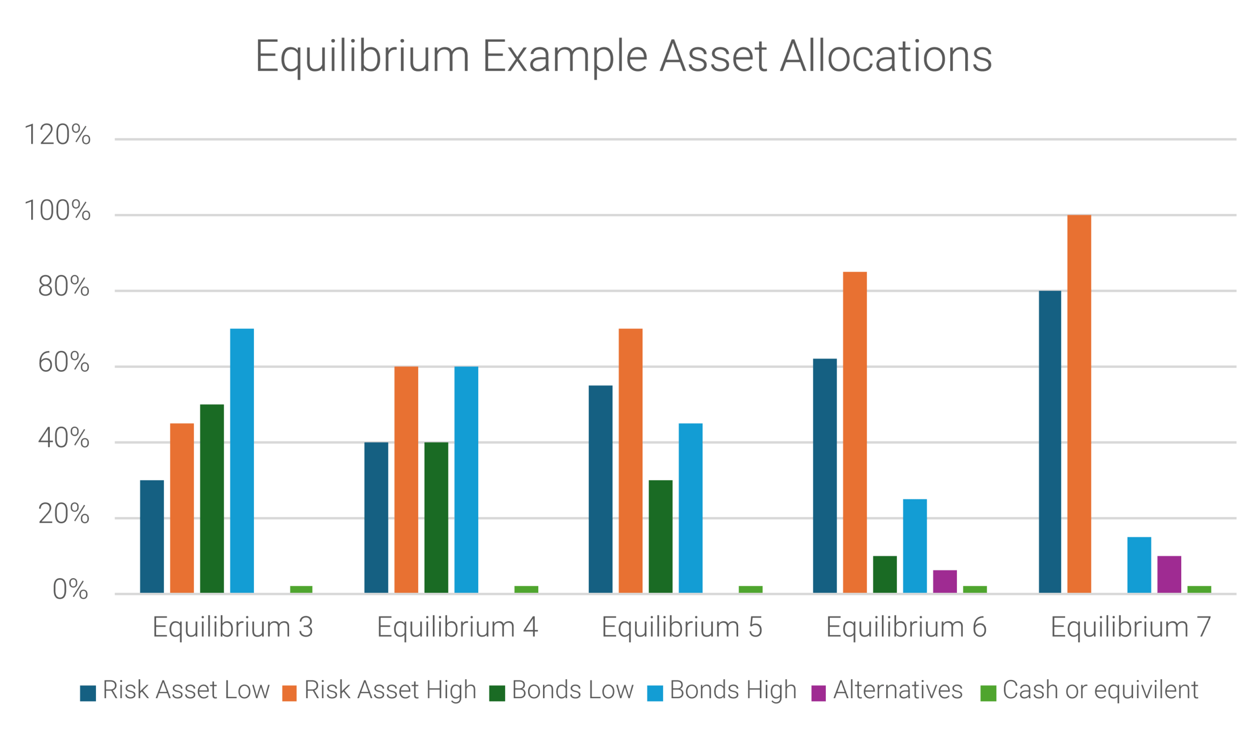 Equilibrium offers 5 levels of risk asset exposure to suit every passive investors needs. The strategies are not designed to outperform the market performance but simply replicate it as close as possible through low cost ETFs. The strategies operate within a multi-asset universe to offer investors the benefits of diversification.